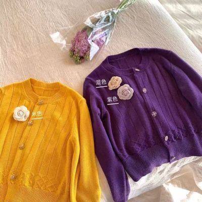 小众洋气紫色长袖韩系针织开衫针织衫2025新款秋款显瘦上衣